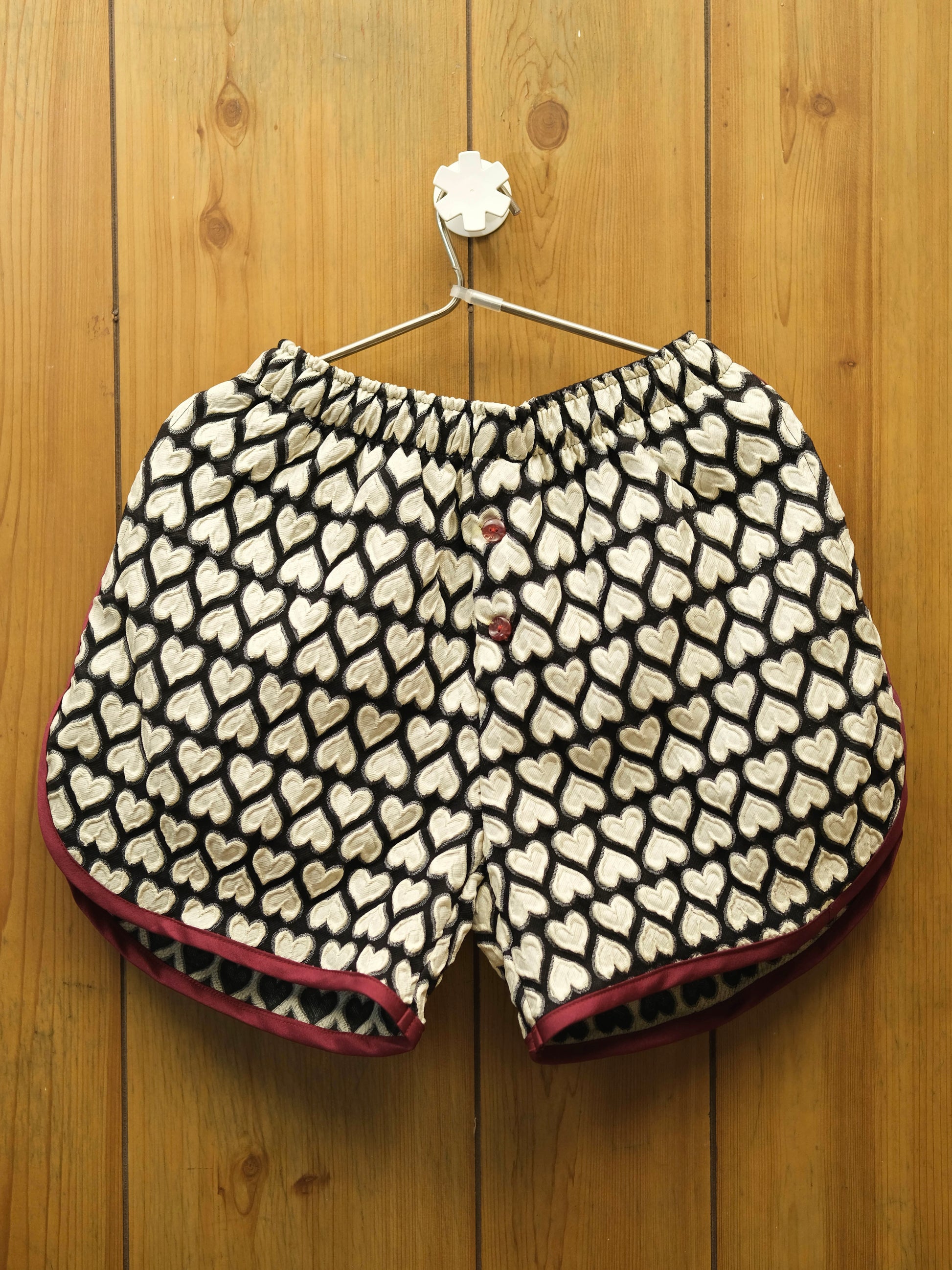 Short-length shorts crafted from textured deadstock canvas. Features clean contrast piping, an elastic waistband for comfort, and four functional pockets. One size fits most.